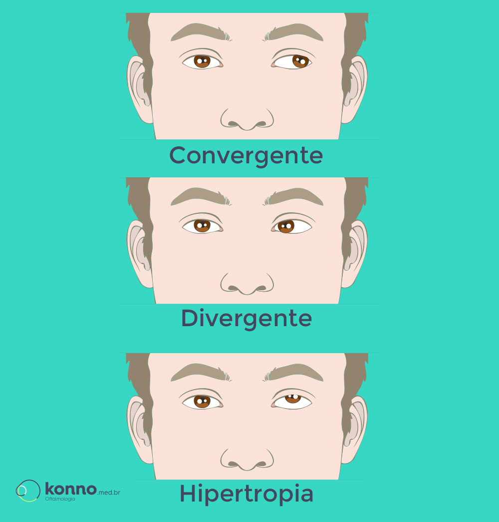 • Divergente (exotropia): um ou os dois olhos se deslocam para fora e em vertical.